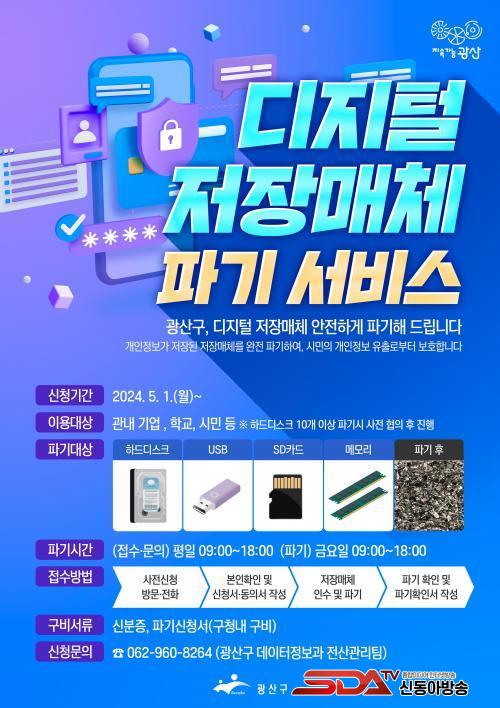 °³ÀÎÁ¤º¸ À¯Ãâ°ú µµ¿ëÀ¸·ÎºÎÅÍ ½Ã¹ÎÀ» º¸È£Çϱâ À§ÇØ ±¤»ê±¸°¡ º¸À¯ ÁßÀÎ ÆÄ¼â ÀåÄ¡¸¦ ÀÌ¿ëÇØ ¹Î°¨ÇÑ Á¤º¸°¡ ÀúÀåµÈ Çϵåµð½ºÅ©, ½º¸¶Æ®Æù, USB(À¯¿¡½ººñ) µî µðÁöÅÐ ÀúÀå¸Åü¸¦ ¹°¸®ÀûÀ¸·Î ¿ÏÀüÈ÷ ÆÄ¼âÇÑ´Ù.