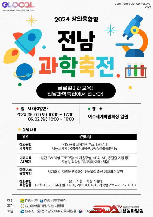 Àü¶ó³²µµ±³À°Ã»(±³À°°¨ ±è´ëÁß)Àº ¿À´Â 6¿ù 1~2ÀÏ ¿©¼ö¼¼°è¹Ú¶÷ȸÀå¿¡¼ ¡®Àü³²°úÇÐÃàÀü¡¯À» ¡®2024 ´ëÇѹα¹ ±Û·ÎÄà ¹Ì·¡±³À°¹Ú¶÷ȸ¡¯¿Í ¿¬°èÇØ °³ÃÖÇÑ´Ù. ÀÌ ÃàÁ¦¿¡´Â Àü³²ÀÇ µµ¼ Áö¿ª»Ó ¾Æ´Ï¶ó, ¿ï¸ªµµ Çлýµéµµ ¿Â¶óÀÎÀ¸·Î Âü¿©ÇÑ´Ù.