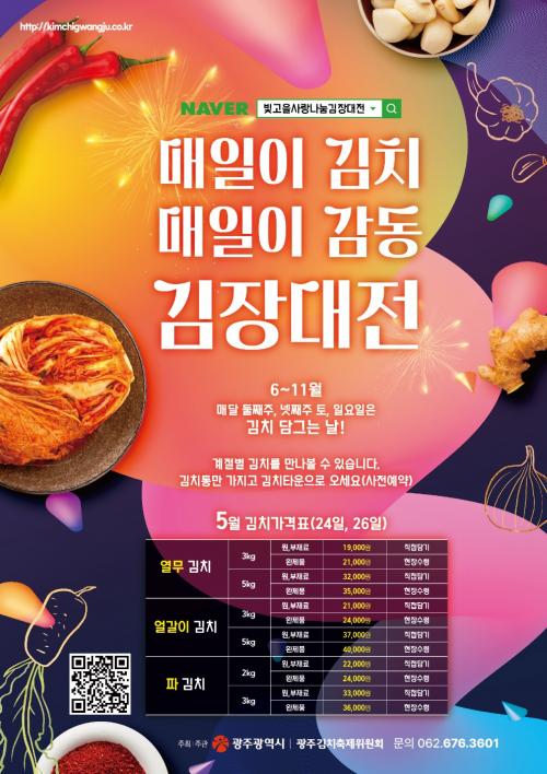 ƯÈ÷ 25ÀÏ ½Ã¹ÎÀÇ ³¯ Çà»ç¿Í ¿¬°èÇØ ±¤ÁÖ½Ãû¿¡¼ ±èÄ¡´ã±×±â ¿¬Áß ÇÁ·Î±×·¥ È«º¸ Çà»ç¸¦ ÁøÇàÇÑ´Ù. Çà»ç ´çÀÏ È«º¸ºÎ½º¿¡¼ ½Ã¹ÎÀ» ´ë»óÀ¸·Î ±¤ÁÖ±èÄ¡ÀÇ ¸ÀÀ» ¾Ë¸®±â À§ÇØ ±¤ÁÖ±èÄ¡ 80g 500°³ ÇÑÁ¤ »Ì±â À̺¥Æ®¸¦ ÆîÄ£´Ù.