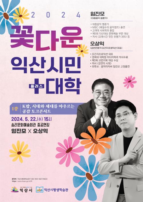 ÀÍ»ê½Ã´Â '2024³â ²É´Ù¿î ÀÍ»ê½Ã¹Î+ ´ëÇÐ'À» ¿À´Â 11¿ù±îÁö 6ȸÂ÷·Î ÁøÇàÇϸç, »çȸ °¢ ºÐ¾ßÀÇ ¸í»çµéÀ» ÃÊÃ»ÇØ °Á¸¦ ¿î¿µÇÒ ¿¹Á¤ÀÌ´Ù.