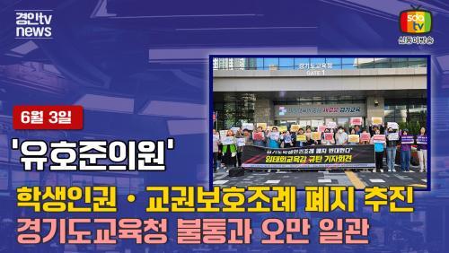 ¸¶Áö¸·À¸·Î À¯È£ÁØ ÀÇ¿øÀº ¡°ÀÌ¹Ì ¿î¿µµÇ°í ÀÖ´Â ÇлýÀαÇÁ¶·Ê¿Í ±³±Çº¸È£Á¶·ÊÁ¶Â÷ Çб³ ÇöÀå¿¡¼ Á¦´ë·Î ¿î¿µµÇÁö ¸øÇϰí ÀÖ´Ù´Â ÀǰßÀÌ °è¼Ó ³ª¿À°í ÀÖ´Â »óȲ¿¡¼ ±âÁ¸ÀÇ Á¶·Êµµ Á¦´ë·Î ¿î¿µÇÏÁö ¸øÇϰí ÀÖ´Â °æ±âµµ±³À°Ã»À» ¹Ï°í °æ±âµµÀÇȸ°¡ »õ·Î¿î Á¶·Ê¸¦ ¸¸µé¾îÁÙ ¼ö´Â ¾ø´Ù.¡±¶ó¸ç ¡°ºÒÅë°ú ¿À¸¸À¸·Î ÀϰüÇÏ´Â ÀÓÅÂÈñ ±³À°°¨°ú °æ±âµµ±³À°Ã»À» ½ÉÆÇÇÏ´Â ¸ð½ÀÀ» °æ±âµµÀÇȸ°¡ º¸¿©Áà¾ß ÇÑ´Ù.¡±¶ó¸ç ¡¸°æ±âµµ±³À°Ã» Çб³±¸¼º¿øÀÇ ±Ç¸®¿Í Ã¥ÀÓ¿¡ °üÇÑ Á¶·Ê¾È¡¹ ¹Ý´ë Àǻ縦 ¸íÈ®È÷ Çß´Ù.