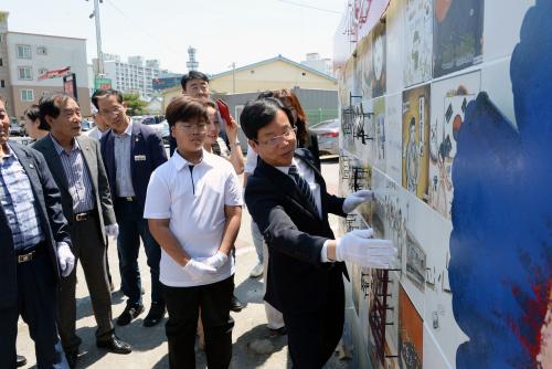 ±â¸²º®Àº ±¤»ê±¸ ÃÊ‧ÁßÇб³ ÇлýµéÀÌ ±×¸° ¡®³ª¶ó»ç¶û¡¯ ±×¸², ±¤»ê±¸ 9°³ º¸ÈÆ´ÜüÀÇ È£±¹‧º¸ÈÆ ±Û±Í¸¦ »õ±ä ŸÀÏÀ» ÀÌ¿ëÇØ Á¶¼ºÇß´Ù.