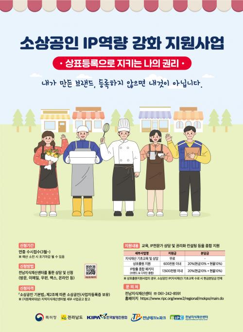 ¼¼ºÎ »ç¾÷º°·Î ¡®¼Ò»ó°øÀÎ IP Ãâ¿ø(»óÇ¥) Áö¿ø»ç¾÷¡¯Àº 22°³ ½Ã±º ¼Ò»ó°øÀÎÀÌ º¸À¯ÇÑ »óÈ£, ·¹½ÃÇÇ µîÀÇ ¾ÆÀ̵ð¾î¸¦ »óÇ¥, ƯÇã, µðÀÚÀÎ µîÀÇ Áö½ÄÀç»êÀ¸·Î ±Ç¸®ÈÇϵµ·Ï Áö¿øÇÏ´Â »ç¾÷ÀÌ´Ù. 1°Ç´ç ÃÖ´ë 60¸¸ ¿øÀÇ »óÇ¥ ±¹³» Ãâ¿ø µî·Ï ´ë¸® ºñ¿ë°ú Ãâ¿ø °ü³³·á¸¦ Áö¿øÇÑ´Ù. Áö³ÇØ 236°ÇÀ» Áö¿øÇßÀ¸¸ç, ¿ÃÇØ´Â 167°ÇÀÇ »óÇ¥ Ãâ¿øÀ» Áö¿øÇÒ °èȹÀÌ´Ù.
