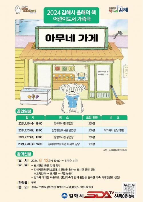 [½Åµ¿¾Æ¹æ¼Û´º½º=ÀÌÁ¶Àº±âÀÚ] ±èÇØ½Ã´Â 2024 ±èÇØ½Ã ¿ÃÇØÀÇ Ã¥ ¾î¸°À̵µ¼­·Î ¼±Á¤µÈ ¡®¾Æ¹«³× °¡°Ô¡¯¸¦ °¢»öÇÑ °¡Á·±ØÀ» 7¿ù ÃÑ 4ȸ¿¡ °ÉÃÄ °ø¿¬ÇÑ´Ù°í 12ÀÏ ¹àÇû´Ù.