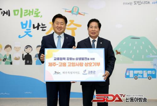 ÀÌ¿¡ ¾Õ¼, Áö³ÇØ 1¿ù °ø¿µ¹Î ±º¼ö°¡ Á¦ÁÖ-°íÈï °£ »ó»ý¹ßÀü°ú ±³·ù Çù·Â ÇÁ·ÎÁ§Æ® ÃßÁøÀ» À§ÇÑ Á¦Áֹ湮¿¡¼ °íÇâ»ç¶û±âºÎ±ÝÀ» ±âŹÇÑ µ¥ À̾î 6¿ù ¿À¿µÈÆ µµÁö»çÀÇ °íÈﱺ ÃÊû Ư°°ú °íÇâ»ç¶û±âºÎ±Ý ±âŹÀÌ ÀÌ·ç¾îÁø ¹Ù ÀÖ´Ù. À̳¯¿¡µµ °íÈﱺ°ú Á¦ÁÖµµ´Â °¢°¢ 2õ¸¸ ¿øÀÇ °íÇâ»ç¶û±âºÎ±ÝÀ» Àü´ÞÇϸç Áö¼ÓÀûÀÎ ±³·ù¿Í »ó»ý¹ßÀü Çù·Â¿¡ ¾ÕÀå¼±â·Î Çß´Ù.