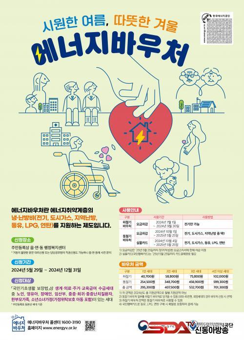 ¿¡³ÊÁö¹Ù¿ìó ½ÅûÀº 2024³â 12¿ù 31ÀϱîÁö Áֹεî·Ï»ó °ÅÁÖÁö µ¿Áֹμ¾ÅÍ·Î ¹æ¹®ÇØ Çϰųª º¹Áö·Î ´©¸®Áý(www.bokjiro.go.kr)À¸·Î ÇÏ¸é µÈ´Ù. ´Ü, 2023³â Áö¿ø´ë»óÀÚ Áß 2024³âµµ Áö¿ø±âÁØÀ» ÃæÁ·Çϰí Á¤º¸ º¯µ¿ÀÌ ¾ø´Â °æ¿ì¿¡´Â ÀÚµ¿ ½ÅûµÇ±â ¶§¹®¿¡ º°µµ·Î ½ÅûÇÏÁö ¾Ê¾Æµµ µÈ´Ù.