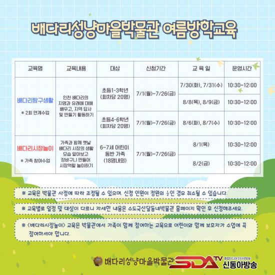 ±³À°Àº ¹«·á·Î ¿î¿µÇÏ¸ç ½Åû Á¢¼ö´Â ¼öµµ±¹»ê´Þµ¿³×¹Ú¹°°ü ȨÆäÀÌÁö¿¡¼ 7¿ù 26ÀϱîÁö ¹Þ´Â´Ù. ´Ü ±³À°Àº ¹Ú¹°°ü »çÁ¤¿¡ µû¶ó º¯°æµÉ ¼ö ÀÖÀ¸¸ç ½Åû ÀοøÀÌ Á¤¿øÀÇ Àý¹ÝÀ» ä¿ìÁö ¸øÇϸé Ãë¼ÒµÉ ¼ö ÀÖ´Ù.