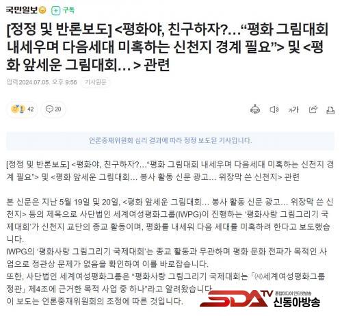 <±¹¹ÎÀϺ¸>´Â Áö³ 5¿ù 19ÀÏ ÀÎÅͳݽŹ®¿¡ ¡¸ÆòȾß, Ä£±¸ÇÏÀÚ?¡¦¡°ÆòÈ ±×¸²´ëȸ ³»¼¼¿ì¸ç ´ÙÀ½¼¼´ë ¹ÌȤÇÏ´Â ½ÅõÁö °æ°è Çʿ䡱¡¹ ±â»ç¸¦ º¸µµÇß´Ù. ³»¿ëÀº ¡°IWPG°¡ ÁøÇàÇÏ´Â ¡®ÆòÈ»ç¶û ±×¸²±×¸®±â ±¹Á¦´ëȸ¡¯°¡ ½ÅõÁö ±³´ÜÀÇ Á¾±³ Ȱµ¿À̸ç, Æòȸ¦ ³»¼¼¿ö ´ÙÀ½ ¼¼´ë¸¦ ¹ÌȤÇÏ·Á ÇÑ´Ù¡±´Â °ÍÀ̾ú´Ù. ¹Ý·ÐÀº ½ÆÁö ¾Ê¾Ò´Ù.