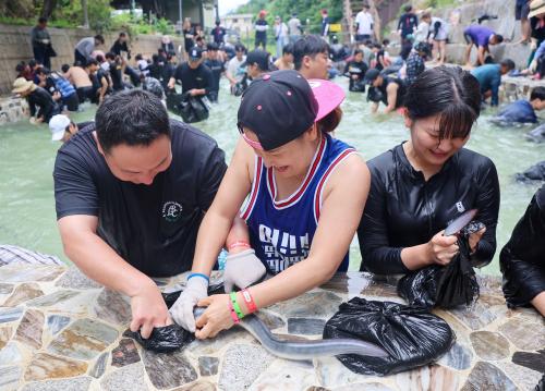 ÀÌ Àå¾îµéÀº °³Àå ÃàÇÏ ÆÛÆ÷¸Õ½ºÀÇ Çϳª·Î ¿­¸° Àå¾îÀâ±â Çà»ç¿¡ ¾²¿´´Ù. °¡Á· ´ÜÀ§ °ü±¤°´ 300¿© ¸íÀº ±âÂù·£µå ¹°³îÀÌÀå¿¡ ¹æ·ùµÈ Àå¾î¸¦ Àâ±â À§ÇØ ´õÀ§µµ Àذí, ¹«¸­ ±íÀÌÀÇ ¹°¼Ó¿¡¼­ ºÐÁÖÈ÷ ¿òÁ÷ÀÌ¸ç ¿©¸§³¯ÀÇ Ãß¾ïÀ» ½×¾Ò´Ù.