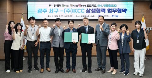 [½Åµ¿¾Æ¹æ¼Û=ÀÌÁöÇö±âÀÚ] ±¤ÁÖ±¤¿ª½Ã ¼­±¸(±¸Ã»Àå ±èÀ̰­)°¡ ¢ßKCC¿Í ¡®¹Î°üÇù·Â ÂøÂøÂø(ÂøÇѼ­±¸ ÂøÇѱâ¾÷ ÂøÇѵ¿Çà) ÇÁ·ÎÁ§Æ®¡¯ÀÇ Ã¹¹ßÀ» ³»µðµ±´Ù. ¼­±¸´Â Áö³­ 17ÀÏ ¼­±¸Ã» ³ª´®È¦¿¡¼­ ¢ßKCC¿Í ÇÔ²² Áö¿ª»çȸ¿¡ ¼±ÇÑ ¿µÇâ·ÂÀ» ÀüÆÄÇÏ°í »ó»ýÇϱâ À§ÇÑ ¡®ÂøÇÑ Äð·çÇÁ¡¯»ç¾÷ ¾÷¹«Çù¾àÀ» ü°áÇß´Ù.