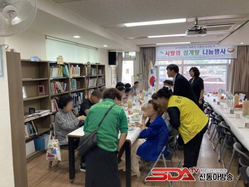 ½Å¸íÈñ »õ¸¶À»ºÎ³àȸÀåÀº ¡°Ä£ºÎ¸ð´Ô °°Àº ¾î¸£½ÅµéÀ» À§ÇØ »ç¶û°ú Á¸°æÀÇ ¸¶À½À» ´ã¾Æ »ï°èÅÁÀ» ²ú¿´´Ù¡±¸ç ¡°¼Ò¹ÚÇÑ À½½ÄÀÌÁö¸¸ ¸ÀÀÖ°Ô µå½Ã°í, °í¸¿´Ù°í ¸»ÇØÁ༠º¸¶÷°ú ÇູÀ» ´À²¼´Ù¡±°í ¸»Çß´Ù.