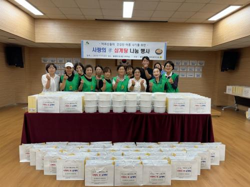 ¡®»ç¶ûÀÇ È¿(üø) »ï°èÅÁ ³ª´® Çà»ç¡¯´Â Ȧ¸ö ¾î¸£½Å°ú Ãë¾à°èÃþ 100°¡±¸¿¡ ºÎ³àȸ¿øµéÀÌ Á÷Á¢ ²úÀÎ »ï°èÅÁ°ú ¼ö°Ç, ¹°Æ¼½´, »ý¼ö µîÀ» ´ãÀº ²Ù·¯¹Ì¸¦ Àü´ÞÇß´Ù.