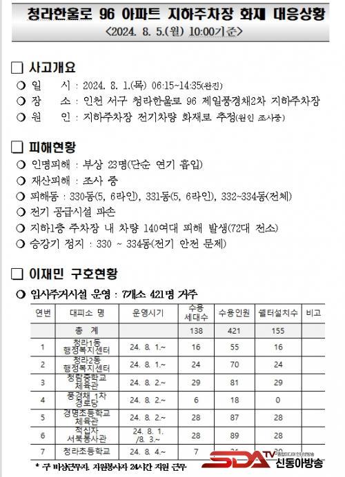 ÀÎõ¼±¸Ã» "û¶óÇÑ¿ï·Î 96 ¾ÆÆÄÆ® ÁöÇÏÁÖÂ÷Àå ÈÀç" ´ëÀÀ»óȲ ¾ð·Ðºê¸®ÇÎ |