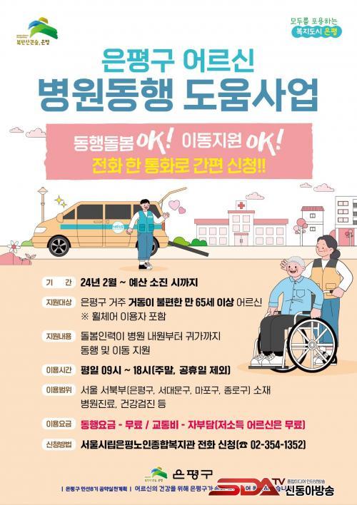 Áö³ 2¿ùºÎÅÍ ÁøÇàµÈ ÀºÆò±¸ ¡®¾î¸£½Å º´¿øµ¿Çà µµ¿ò»ç¾÷¡¯Àº Àú¼Òµæ ¾î¸£½ÅÀ» ´ë»óÀ¸·Î, µ¹º½ ÀηÂÀÌ °¡Á¤À¸·Î ã¾Æ°¡ ¼¿ï ¼ºÏºÎ ¼ÒÀç º´¿ø¿¡ µ¿ÇàÇϸç Á¢¼ö‧¼ö³³ µîÀ» µ½°í ¸ð´ÏÅ͸µÇÏ¸ç °Ç° ȸº¹À» Áö¿øÇÏ´Â ¹Î¼±8±â °ø¾à»ç¾÷ÀÌ´Ù.