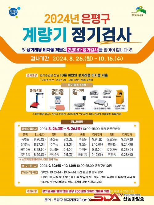 Á¤±â°Ë»ç´Â ¿À´Â 26ÀÏ ³ì¹øµ¿À» ½ÃÀÛÀ¸·Î °¢ µ¿ Áֹμ¾ÅÍ¿Í ±¸Ã»À» ¼øÈ¸Çϸç ÁøÇàµÈ´Ù. ´Ù¼öÀÇ °è·®±â°¡ ¸ð¿© Àְųª °Ç¹° µî¿¡ ºÎÂøµÅ À̵¿ÀÌ °ï¶õÇÑ °æ¿ì ³»´Þ 26ÀϱîÁö ¼ÒÀçÀå¼Ò °Ë»ç¸¦ ½ÅûÇÏ¸é µÈ´Ù. ÀÚ¼¼ÇÑ °Ë»ç ÀÏÁ¤°ú Àå¼Ò´Â ÀºÆò±¸Ã» ´©¸®Áý °í½Ã¡¤°ø°í¶õÀ» ÅëÇØ È®ÀÎÇÒ ¼ö ÀÖ´Ù.