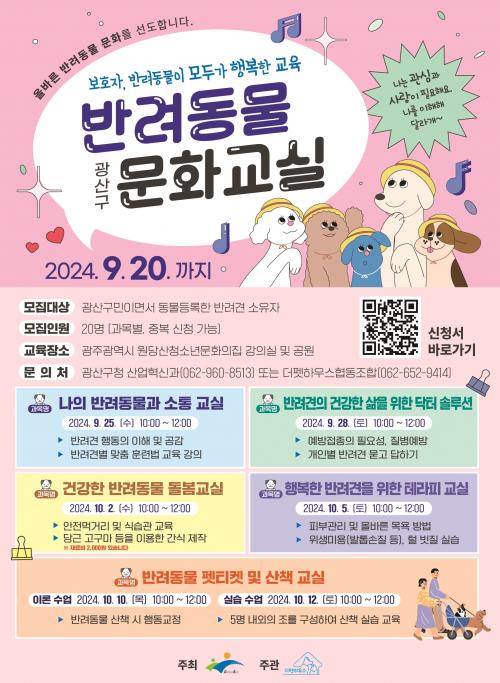 ¹Ý·Áµ¿¹° ¹®È±³½ÇÀº ±¤ÁÖ±¤¿ª½Ã¿ø´ç»êû¼Ò³â¹®ÈÀÇÁý °ÀÇ½Ç ¹× °ø¿ø¿¡¼ ÁøÇàÇϸç, Âü¿© ´ë»óÀº ±¤»ê±¸¹ÎÀÌ¸é¼ ¹Ý·Áµ¿¹° µî·ÏÀ» ¿Ï·áÇÑ ¼ÒÀ¯ÀÚ´Ù.