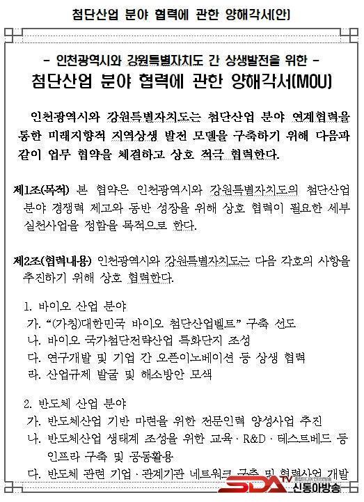 »çÁø=À¯Á¤º¹ ÀÎõ±¤¿ª½ÃÀå°ú ±èÁøÅ °­¿øÆ¯º°ÀÚÄ¡µµÁö»ç°¡ 13ÀÏ ½Ãû Á¢°ß½Ç¿¡¼­ ¿­¸° 'ÀÎõ±¤¿ª½Ã-°­¿øÆ¯º°ÀÚÄ¡µµ ÷´Ü»ê¾÷ ºÐ¾ß Çù·Â ¾÷¹«Çù¾à ü°á½Ä'¿¡¼­ Çù¾àÀ» ü°áÇÑ µÚ ±â³äÃÔ¿µÀ» Çϰí ÀÖ´Ù.