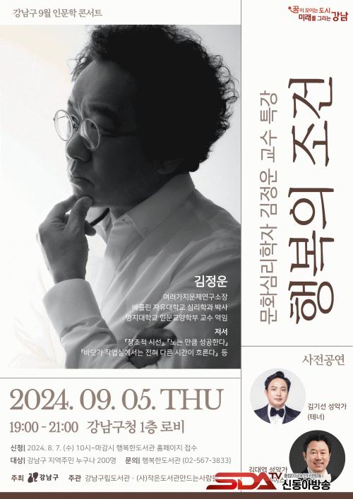 9¿ù µ¶¼ÀÇ ´Þ¿¡´Â ¹®È½É¸®ÇÐÀÚ ±èÁ¤¿î ±³¼ö°¡ ¡®ÇູÀÇ Á¶°Ç¡¯¿¡ ´ëÇØ °ÀÇÇÑ´Ù. º£¸¦¸°ÀÚÀ¯´ëÇб³¿¡¼ ½É¸®ÇÐÀ» °øºÎÇÏ°í ¸íÁö´ëÇб³ ±³¼ö¸¦ ¿ªÀÓÇÑ ±è ±³¼ö´Â ¡¸Ã¢Á¶Àû ½Ã¼±¡¹,¡¸³ë´Â ¸¸Å ¼º°øÇÑ´Ù¡¹µîÀÇ Àú¼¸¦ ÅëÇØ ´ëÁß¿¡°Ô ½É¸®ÇÐÀ» ³Î¸® ¾Ë¸®°í ÀÖ´Ù. À̹ø °¿¬¿¡¼´Â ÇູÀº ´Ü¼øÇÑ ³í¸®Àû ¼³µæÀÌ ¾Æ´Ï¶ó °¨°¢Àû °æÇèÀ̸ç ÇູÀ» °áÁ¤ÇÏ´Â »õ·Î¿î »îÀÇ °¡´É¼º¿¡ ´ëÇØ À̾߱âÇϰíÀÚ ÇÑ´Ù.