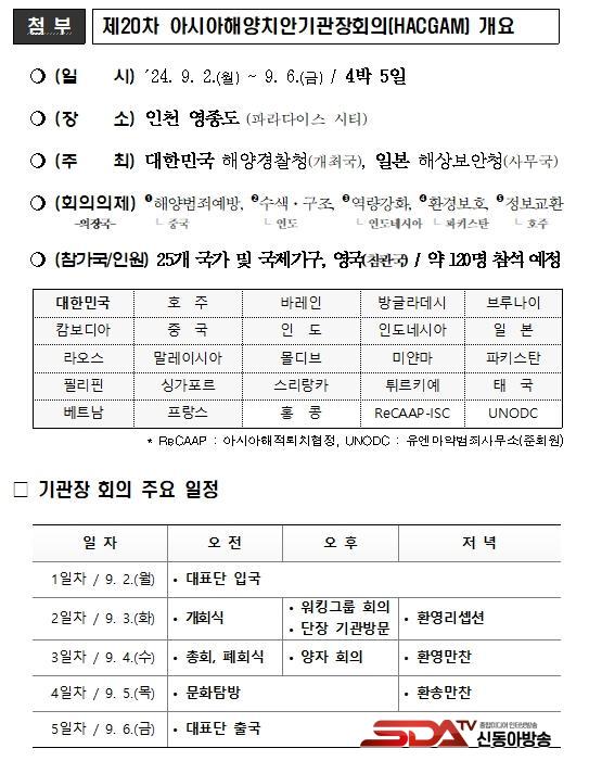 ¿ÃÇØ Á¦20Â÷ ¾Æ½Ã¾ÆÇؾçÄ¡¾È±â°üÀåȸÀÇ´Â ¡®¿ì¸®ÀÇ ¹Ù´Ù¸¦ °¡²Ù¸ç ¹Ì·¡¸¦ º¸ÀåÇÏ´Ù.(Gardening our seas, Securing our tomorrow)¡¯¶ó´Â ½½·Î°Ç ¾Æ·¡ °³ÃֵǸç, ´ëÇѹα¹ ÇØ¾ç°æÂûûÀÇ ÇØ¾ç¾Èº¸¡¤¾ÈÀü ºÐ¾ß Àü¹®¼º, ±Û·Î¹ú ÁßÃß ±â°üÀ¸·Î¼ ¿ªÇÒ°ú ¹Ì·¡Çü ºñÀüÀ» Á¦½ÃÇÒ ¿¹Á¤ÀÌ´Ù.