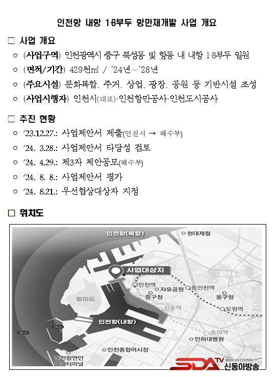 ³»Ç× 1‧8 ºÎµÎ Àç°³¹ß»ç¾÷Àº Á¦¹°Æ÷¸£³×»ó½º ¼±µµ»ç¾÷À¸·Î, 2024³âºÎÅÍ 2028³â±îÁö ÃÑ 5,906¾ï ¿øÀ» ÅõÀÔÇØ ÀÎõ±¤¿ª½Ã Áß±¸ ºÏ¼ºµ¿ ¹× Ç×µ¿ ÀÏ´ë¿¡ ÇØ¾ç¹®È µµ½É°ø°£À» Á¶¼º(42¸¸ 9õ§³ ±Ô¸ð)ÇÏ´Â »ç¾÷ÀÌ´Ù.