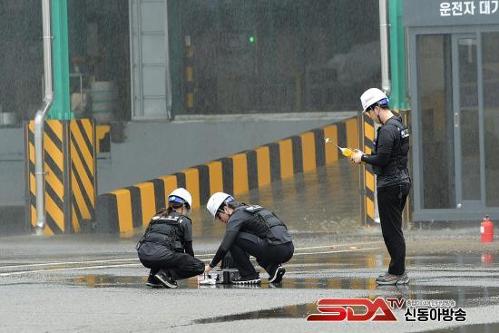 ÀÌÈÄ Å×·¯ ¿ëÀÇÀÚ°¡ °øÀåÀ¸·Î ÁøÀÔÇÑ »óȲÀ» °¡Á¤ÇØ °æÂûÀÌ Å×·¯ ¿ëÀÇÂ÷·® µµÁַθ¦ Â÷´ÜÇϰí Å×·¯¹üÀ» üÆ÷ÇßÀ¸¸ç, ¼Ò¹æÂ÷ Ã⵿ µÚ È­ÀçÁøÈ­¿Í ÀÎ¸í±¸Á¶ Ȱµ¿À» ¿Ï·áÇÑ ÈÄ ¿À¿°¹°Áú ŽÁö, ¼Òµ¶ ¹× º¹±¸ÀÛ¾÷, »ç°í¿øÀÎ Á¶»ç ¼øÀ¸·Î ÈÆ·ÃÀ» ¸¶¹«¸®Çß´Ù.