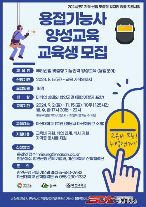 ±³À°Àº ¹«·áÀÌ¸ç ¼ö·áÀÚ¿¡°Ô´Â TIG¿ëÁ¢±â´É»ç ÀÚ°ÝÁõ ÀÀ½Ã·á°¡ Áö¿øµÇ¸ç ¸ÂÃãÇü Ãë¾÷ ¾Ë¼± ¼ºñ½ºµµ ÇÔ²² Á¦°øµÈ´Ù.