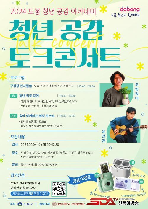 Âü¿© ½ÅûÀº 9¿ù 2ÀϱîÁö ½Åû Àü¿ë ´©¸®Áý(https://dobong.oopy.io) ¶Ç´Â Æ÷½ºÅÍ ³» QRÄÚµå·Î ÇÏ¸é µÈ´Ù. »ç¿¬À» º¸³»ÁØ Âü¿©ÀÚ¿¡°Ô´Â °æÇ° ´ç÷ÀÇ ±âȸ¸¦ Á¦°øÇÑ´Ù.