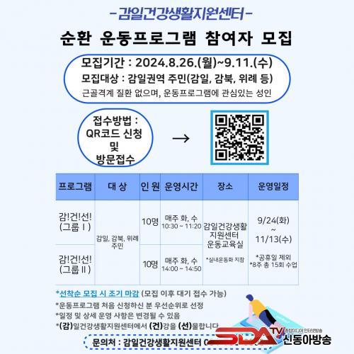 ¿ÃÇØ °¨Àϰǰ»ýȰÁö¿ø¼¾ÅÍ ÇÁ·Î±×·¥¿¡ ÇÑ ¹øµµ Âü¿©ÇÑ °æÇèÀÌ ¾ø´Â ½Å±Ô´ë»óÀÚ°¡ ¿ì¼± Á¢¼ö ´ë»óÀ̸ç, 26ÀϺÎÅÍ Çϳ²½Ãº¸°Ç¼Ò ȨÆäÀÌÁö(www.hanam.go.kr/health/index.do) ¾Ë¸²Ã¢ ¸µÅ©¿¡ Á¢¼ÓÇϰųª Á÷Á¢ °¨Àϰǰ»ýȰÁö¿ø¼¾Å͸¦ ¹æ¹®ÇØ ½ÅûÇÏ¸é µÈ´Ù. Æ÷½ºÅÍ QRÄڵ带 ÅëÇÑ Á¢¼öµµ °¡´ÉÇÏ´Ù.