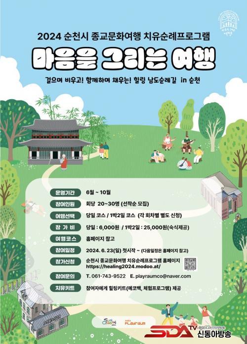 ¼øÃµ Á¾±³¹®È¿©Çà Ä¡À¯¼ø·ÊÇÁ·Î±×·¥Àº ¹®ÈüÀ°°ü±¤ºÎ°¡ ÈÄ¿øÇÏ°í ¼øÃµ½Ã ÁÖÃַοµÇ°í ÀÖÀ¸¸ç, ¿ì¸®³ª¶ó¸¦ ´ëÇ¥ÇÏ´Â »ïº¸»çÂûÀÎ ¼Û±¤»ç¸¦ Áß½ÉÀ¸·Î, °ü³» Á¾±³À¯»ê(±âµ¶±³¿ª»ç¹Ú¹°°ü, ¸Å»êµî ±Ù´ë À¯Àû ÀÏ¿ø µî)À» Ȱ¿ëÇÑ ¸¶À½ Èú¸µ ÇÁ·Î±×·¥À» ÁøÇàÇϰí ÀÖ´Ù. Èûµé°í ÁöÄ£ Çö´ëÀε鿡°Ô »îÀÇ ¹«°Å¿î ÁüÀ» ³»·Á³õ°í, ÀÚ¿¬À̶ó´Â ¹«´ë¿Í »çÂûÀ̶ó´Â Á¾±³¹®ÈÀÇ °ø°£¿¡¼ ȸº¹ÇÏ´Â ½Ã°£À» ¼±»çÇϰíÀÚ ÇÑ´Ù.