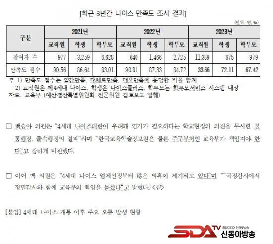 ¡à ±¹È¸ ±³À°À§¿øÈ¸ ¹é½Â¾Æ ÀÇ¿ø(´õºÒ¾î¹ÎÁÖ´ç)ÀÌ °ø°³ÇÑ ±³À°ºÎ°¡ ÀÛ³â 7¿ù 31ÀϺÎÅÍ 9¿ù 15ÀϱîÁö ½Ç½ÃÇÑ 'Çѱ¹±³À°ÇмúÁ¤º¸¿ø ³ªÀ̽º °¨»ç °á°ú ¹× óºÐ'¿¡ µû¸£¸é Á¹¼Ó°³Åë ³ªÀ̽º´ë¶õ¿¡ ÃÑüÀû ºÎ½ÇÀÌ µå·¯³µ´Ù.