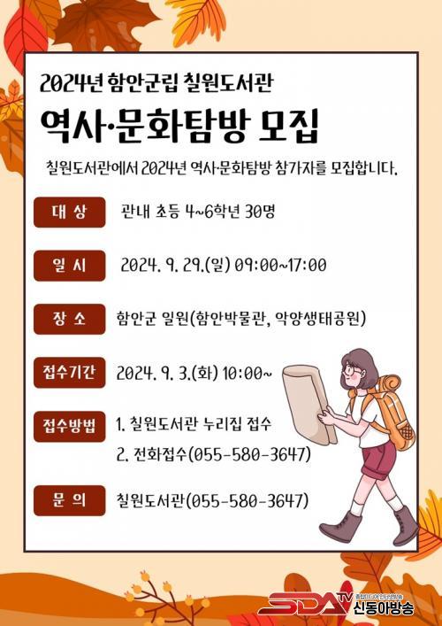 À̹ø Ž¹æ¿¡´Â Ãʵî 4~6Çгâ 30¸íÀÌ Âü°¡ÇÒ ¿¹Á¤À¸·Î Âü°¡ºñ´Â Àü¾× ¹«·á´Ù. Âü°¡ ½ÅûÀº 3ÀÏ(È) ¿ÀÀü 10½ÃºÎÅÍÀ̸ç, Âü°¡¸¦ Èñ¸ÁÇÏ´Â ±º¹ÎÀº ÀüÈ(¢Ï055-580-3647) ¶Ç´Â Ä¥¿øµµ¼°ü ´©¸®Áý(www.haman.go.kr/chirwonlib.web)À» ÅëÇØ Á¢¼öÇÒ ¼ö ÀÖ´Ù.