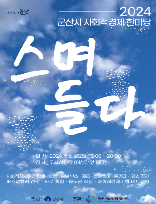 ±º»ê½Ã °ü°èÀÚ´Â ¡°¡®2024 ±º»ê½Ã »çȸÀû°æÁ¦ ÇѸ¶´ç <½º¸çµé´Ù>¡¯´Â »çȸÀû°æÁ¦ÀÇ °¡Ä¡¸¦ ÀÚ¿¬½º·´°Ô Á¢Çϰí, Áö¿ª »çȸ¿¡ ´ëÇÑ °ü½Éµµ ³ôÀÏ ¼ö ÀÖ´Â ÁÁÀº ±âȸ¡±¶ó¸é¼ ¡°¾Æ¹«ÂÉ·Ï ²À ¿À¼Å¼ °¡Á·, Ä£±¸µé°ú ÇÔ²² Áñ°Å¿î ½Ã°£ º¸³»½Ã±æ ¹Ù¶õ´Ù"¶ó°í ÀüÇß´Ù.