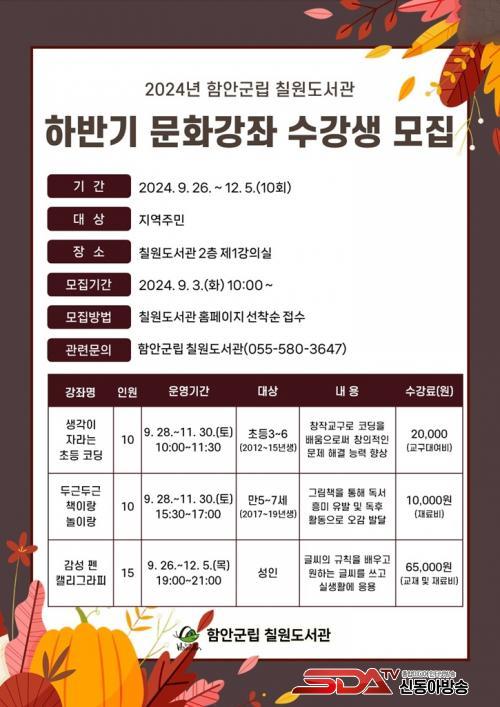 À̹ø ÇϹݱ⿡´Â ¡â»ý°¢ÀÌ ÀÚ¶ó´Â Ãʵî ÄÚµù(Ãʵî3~6Çг⠴ë»ó) ¡âµÎ±ÙµÎ±Ù Ã¥À̶û ³îÀ̶û(¸¸5~7¼¼ ´ë»ó) ¡â¼ºÀÎÀ» ´ë»óÀ¸·Î °¨¼º Ææ ͏®±×¶óÇÇ(¾ß°£)¸¦ °³¼³ÇÑ´Ù. °Á´ ¿À´Â 9¿ù 26ÀϺÎÅÍ 12¿ù 5ÀϱîÁö °¢ 10ȸ °úÁ¤À¸·Î ÁøÇàµÉ ¿¹Á¤ÀÌ´Ù.