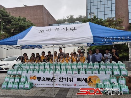 ÃÖÁ¤¿Á È£¹ÚºÀ»ç´Ü ȸÀåÀº ¡°Ãß¼® ¸íÀýÀ» ¾ÕµÎ°í °ü³» ¾î·Á¿î ÀÌ¿ô¿¡°Ô ÈûÀÌ µÇ°íÀÚ ÀÛÀº Á¤¼ºÀÌ ´ã±ä ÈÄ¿ø ¹°Ç°À» ÁغñÇß´Ù¡±¸ç ¡°¾ÕÀ¸·Îµµ ±âºÎ¸¦ Æ÷ÇÔÇØ ´Ù¾çÇÑ ºÀ»çȰµ¿À» ÅëÇÑ ÀÌ¿ô»ç¶ûÀ» ½ÇõÇÒ °ÍÀ» ¾à¼ÓÇϸç, ¸ðµÎ dz¼ºÇÑ ÇѰ¡À§¸¦ ¸ÂÀÌÇÏ½Ã±æ ¹Ù¶õ´Ù¡±°í ¸»Çß´Ù.