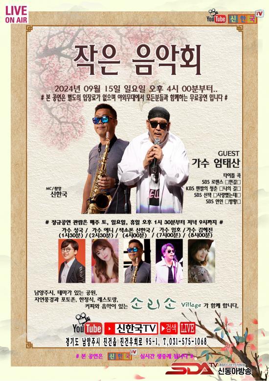 9¿ù 15ÀÏ °¡À» ÃÊÀÔ¿¡ ¿¸®´Â À̹ø À½¾Çȸ¿¡´Â ÇѰ¡À§ ¸íÀýÀ» ¸Â¾Æ ¿ÀÈÄ 4½ÃºÎÅÍ Å׸¶°ø¿ø ¼Ò¸®¼Òºô¸®Áö ¾ß¿Ü ¹«´ë¿¡¼ ÆÒµé°ú Á÷Á¢ ¼ÒÅëÇÏ¸ç °ø¿¬À» ÁøÇàÇÒ ¿¹Á¤À̸ç, À¯Æ©ºê ½ÅÇѱ¹TV¸¦ ÅëÇØ ½Ç½Ã°£ ¹æ¼Ûµµ ¿¹Á¤µÇ¾î ÀÖ´Ù.