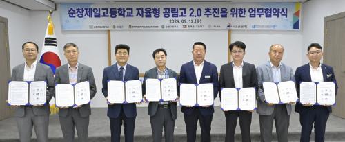 ±ºÀÌ 12ÀÏ ¼øÃ¢Á¦ÀϰíµîÇб³¸¦ Áß½ÉÀ¸·Î ÇÑ ÀÚÀ²Çü °ø¸³°í 2.0 °ø¸ð»ç¾÷ ÃßÁøÀ» À§ÇØ Áö¿ª ±³À°±â°ü°ú ±â¾÷µéÀÌ ÇÑÀÚ¸®¿¡ ¸ð¿© ¶æ±íÀº ¾÷¹«Çù¾àÀ» ü°áÇß´Ù°í ¹àÇû´Ù.