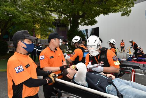 À̳¯ ÈÆ·Ã¿¡´Â µ¿ºÎ¼Ò¹æ¼¿Í µ¿ºÎ°æÂû¼ µî 6°³ °ø°ø±â°ü°ú Á¶¼±´ëÇб³ º´¿ø°ú µ¿¸íº´¿ø µî 4°³ ÀÇ·á±â°ü, µ¿±¸ÀÇ¿ë¼Ò¹æ´ë¿Í Á¶¼±´ë ¼Ò¹æÀç³°ü¸®Çаú µî 2°³ ¹Î°£ ´Üü 200¿© ¸íÀÌ Âü¿©ÇÑ °¡¿îµ¥ ÁøÇàµÆ´Ù.