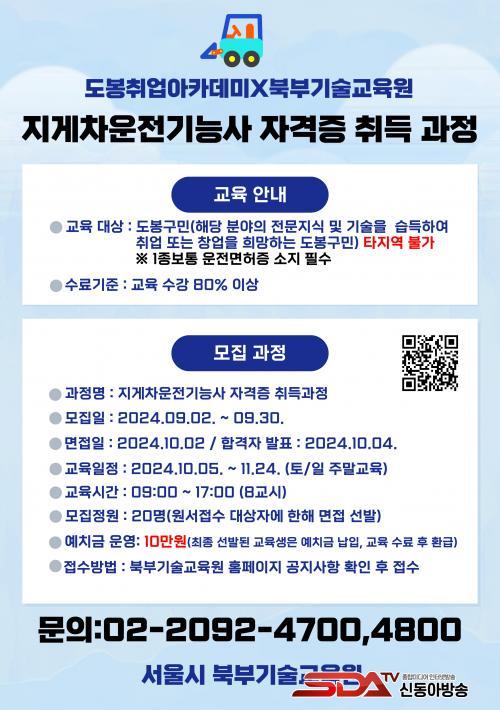 ¼ö°À» Èñ¸ÁÇÏ´Â ±¸¹ÎÀº 9¿ù 30ÀϱîÁö ¼¿ï½Ã ºÏºÎ±â¼ú±³À°¿ø ´©¸®ÁýÀ¸·Î ½ÅûÇÒ ¼ö ÀÖ´Ù. ´Ü, 1Á¾ º¸Åë ¿îÀü¸éÇ㸦 ¼ÒÁöÇϰí ÀÖ¾î¾ß ÇÑ´Ù.