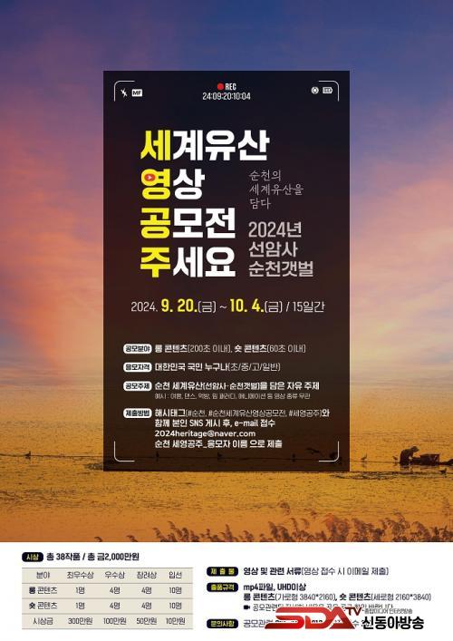 ¡®¼øÃµ ¼¼°èÀ¯»ê ¿µ»ó °ø¸ðÀü¡¯Àº ¼øÃµÀÇ ¼¼°èÀ¯»êÀÎ ¼±¾Ï»ç ¹× ¼øÃµ °¹¹ú°ú °ü·ÃµÈ ÀÚÀ¯ ÁÖÁ¦ÀÇ ¿µ»óÀ» 200ÃÊ À̳» ·Õ ÄÜÅÙÃ÷¿Í 60ÃÊ À̳» ¼ô ÄÜÅÙÃ÷ µÎ °¡Áö ºÐ¾ß·Î °ø¸ðÇÑ´Ù. Àü±¹ÀÇ ÃʵîÇлýºÎÅÍ ÀϹÝÀαîÁö ´©±¸³ª Âü¿©ÇÒ ¼ö ÀÖÀ¸¸ç, Á¢¼ö±â°£Àº ¿À´Â 9¿ù 20ÀϺÎÅÍ 10¿ù 4ÀϱîÁö´Ù.