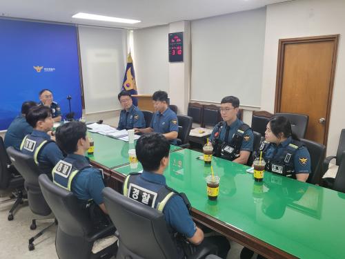 ƯÈ÷, ¹«¾È¼ÀÇ °æ¿ì ÃÖ±Ù ÀÚÀü°Å Àýµµ µîÀÌ ¹ß»ýÇϰí ÀÖ´Â ¿À·æÁö±¸ Çпø°¡ ¹× »ó°¡ ¹ÐÁýÁö¿ª µî¿¡ ±âµ¿¼øÂû´ë¸¦ ¹èÄ¡ÇÏ¿© °¡½ÃÀû ¼øÂûȰµ¿À» ½Ç½ÃÇÏ´Â µî ¹üÁË ¿¹¹æÀ» À§ÇÑ ³ë·ÂÀ» Àü°³ ÁßÀ¸·Î, Âü¼®ÀÚµéÀº °£´ãȸ ÀÌÈÄ ³²¾Ç ¿À·æÁö±¸·Î À̵¿ÇÏ¿© ¹üÁË¿¹¹æÀ» À§ÇÑ ÇÕµ¿¼øÂûÀ» ½Ç½ÃÇß´Ù.