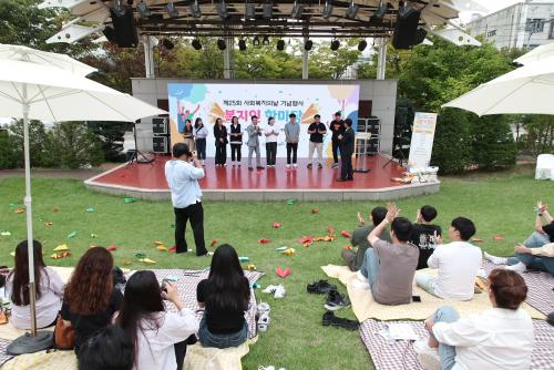 À̳¯ Çà»ç´Â ´çÁø½ÃÁö¿ª»çȸº¸ÀåÇùÀÇü(°ø°øÀ§¿øÀå ¿À¼ºÈ¯ ․ ¹Î°£À§¿øÀå ±èÇâ°ï) ÁÖ°üÀ¸·Î ÁøÇàÇßÀ¸¸ç, »çȸº¹Áö±â°ü, ½Ã¼³°ú ¹ýÀÎ Á¾»çÀÚ 300¿© ¸íÀÌ Âü¼®Çß´Ù. ¡â±¹¹ÎÀÇ·Ê¡âÀ¯°øÀÚ Ç¥Ã¢ ¡â±â³ä»ç ¡âÇ÷¡½Ã¸÷ ÆÛÆ÷¸Õ½º ¡âÈÇÕÀÇ ½Ã°£ ¡â¼ÒÅëÀÇ ½Ã°£ ¼øÀ¸·Î À̾îÁ³À¸¸ç, »çȸº¹Áö ÇöÀå¿¡¼ Çå½ÅÇÏ´Â Á¾»çÀÚÀÇ ³ë°í¸¦ °Ý·ÁÇÏ°í »óÈ£ °£ ±³·ùÇÒ ¼ö ÀÖ´Â ÀåÀ» ¸¸µå´Â ¶æ±íÀº ÀÚ¸®¿´´Ù.