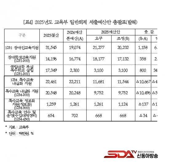 ³»³â ±³À°ºÎ Ư¼ö±³À° Áֿ俹»êµµ »è°¨µÈ °ÍÀ¸·Î ÆÄ¾ÇµÆ´Ù. ±³À°ºÎ Ư¼ö±³À° ³»½ÇÈ­ Áö¿ø»ç¾÷ ¿¹»êÀº 2024³â º»¿¹»ê 222¾ï 1100¸¸¿ø ´ëºñ 2025³â 115¾ï 4400¸¸¿øÀ¸·Î, ÃÑ 106¾ï 6700¸¸¿ø(48%)ÀÌ °¨¾×µÇ¾ú´Ù. ÇØ´ç ¿¹»êÀº ¡ãƯ¼ö±³À° Á¤Ã¥¿¬±¸ ¹× ½ÇÅÂÁ¶»ç ¡ãÀå¾ÖÀÎ »ý¾Ö ´Ü°èº° Áö¿ø ¡ãƯ¼ö±³À° ±³À°°úÁ¤ ¹× ±³°ú¿ëµµ¼­ °³¹ß ¡ãÀå¾ÖÇлý µðÁöÅÐ ±³À° Áö¿ø µî¿¡ »ç¿ëµÈ´Ù.