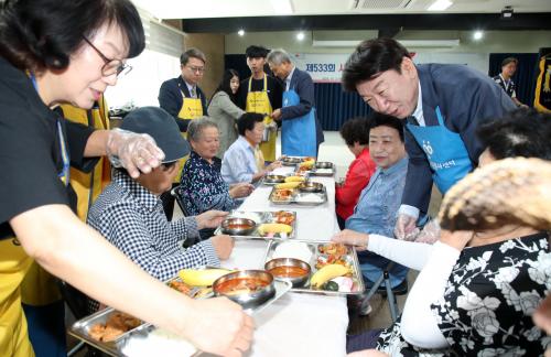 À̳¯ »ç¶ûÀÇ Èñ¸Á¿Â÷¿¡´Â ÇູÇÑ ¹ä»ó ǪµåºÀ»ç´Ü, ±Ý¾Ï1µ¿ ÁÖ¹ÎÀÚÄ¡À§¿øÈ¸ µî 40¿© ¸íÀÇ ºÀ»çÀÚ°¡ Âü¿©ÇØ ÀϼÕÀ» °Åµé¾ú´Ù.