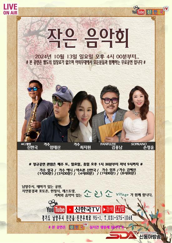 À̹ø À½¾Çȸ´Â °¡À»ÀÇ Á¤Ã븦 ¸¸³£Çϸç, °ü°´µé°ú ÇÔ²² À½¾ÇÀÇ ¾Æ¸§´Ù¿òÀ» ³ª´©´Â Ưº°ÇÑ ½Ã°£ÀÌ µÉ °ÍÀÌ´Ù. °ø¿¬Àº 13ÀÏ ¿ÀÈÄ 4½ÃºÎÅÍ À¯Æ©ºê ½ÅÇѱ¹TV ä³Î·Î ½Ç½Ã°£ Áß°èµÈ´Ù.