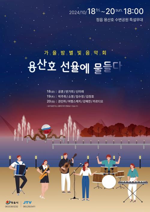 À̹ø À½¾Çȸ´Â ³»Àå»ê ¿ë»êÈ£ ¼öº¯°ø¿ø Ư¼³¹«´ë¿¡¼ °¡À»ÀÇ Á¤Ã븦 ¹è°æ »ï¾Æ ¡®°¡À»¹ã º°ºû À½¾Çȸ¡¯¶ó´Â À̸§À¸·Î ¿À´Â 18ÀϺÎÅÍ 20ÀϱîÁö °³ÃֵȴÙ.