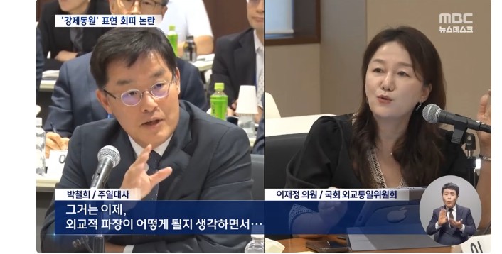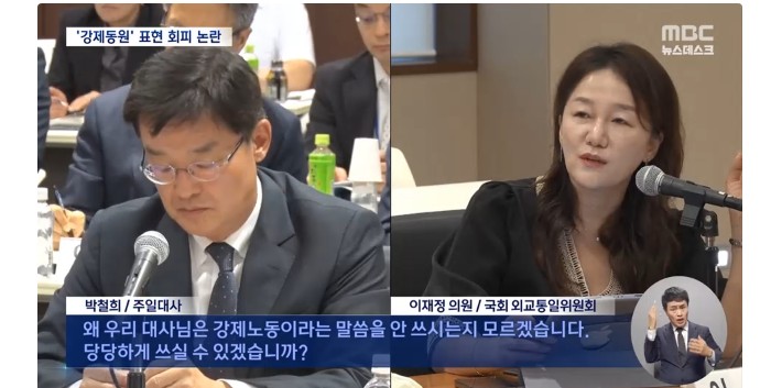 18ÀÏ ÀϺ» µµÄì ÁÖÀÏ Çѱ¹´ë»ç°ü¿¡¼ ¿¸° ±¹È¸ ¿Ü±³ÅëÀÏÀ§¿øÈ¸ ±¹Á¤°¨»ç¿¡¼ ÀÌÀçÁ¤ ´õºÒ¾î¹ÎÁÖ´ç ÀÇ¿øÀÇ ¡®°Á¦ µ¿¿ø Ç¥Çö ¾²°Ú³Ä¡®´Â ÁúÀÇ¿¡ ¹Ú ´ë»ç°¡ ¡°½Ç¹«ÁøµéÇÏ°í °ËÅäÇÏ¸é¼ ¾ê±âÇØ º¸°Ú´Ù¡±´õ´Ï, ÀÌ ÀÇ¿øÀÌ ÀçÂ÷ °°Àº Áú¹®À» ÇÏÀÚ, ¡°ÀϺ» Á¤ºÎ¿Í Çѱ¹ Á¤ºÎ°¡ »ç¿ëÇÏ´Â ¡®°Á¦¡¯¶ó´Â ¿ë¾îÀÇ ¶æ¿¡ Â÷À̰¡ ÀÖ´Ù¡±´Â µý¼Ò¸®¿¡ À̾î,