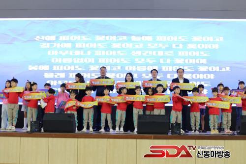 ¸ÕÀú, ½ÄÀü°ø¿¬À¸·Î Áø¿ùÃÊ․ÁßÇб³ ÇлýµéÀÇ »ç¹°³îÀÌ¿Í ±¤¾çÁßÁøÃʵîÇб³ ÇлýµéÀÇ ±â¾ÇÇÕÁÖ°¡ ¿¬ÁֵǾú´Ù. °³¸·½Ä¿¡¼´Â ±¤¾ç±³À°ÀÇ ºñÀüÀ» ´ãÀº ·¹ÀÌÀú¼î¸¦ ½ÃÀÛÀ¸·Î Çлý 3¸íÀÌ °¢°¢ Çѱ¹¾î, Áß±¹¾î, º£Æ®³²¾î·Î ȯ¿µ Àλ縦 ÇÏ¿´À¸¸ç, °³¸·½Ä¿¡ Âü¼®ÇÑ Çлý․Çкθð․Áö¿ª¹Î ¸ðµÎ°¡ ÇÔ²² Áö¿ªÁß½ÉÀÇ ¹Ì·¡±³À° ½ÇÇöÀ» ´ÙÁüÇÏ´Â °øµ¿¼±Æ÷½ÄÀ» ÇÏ¿´´Ù.