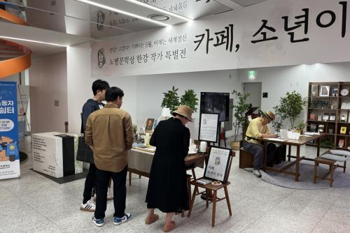 ÇѰ ÀÛ°¡ÀÇ ³ëº§¹®Çлó ¼ö»óÀ» ±â³äÇØ ¸¶·ÃÇÑ ºÏÄ«Æä¿¡´Â ¡®¼Ò³âÀÌ ¿Â´Ù¡¯, ¡®Ã¤½ÄÁÖÀÇÀÚ¡¯, ¡®ÀÛº°ÇÏÁö ¾Ê´Â´Ù¡¯, ¡®¼¶ø¿¡ Àú³áÀ» ³Ö¾îµÎ¾ú´Ù¡¯, ¡®Èñ¶ø¾î ½Ã°£¡¯, ¡®±×´ëÀÇ Â÷°¡¿î ¼Õ¡¯ µî 30¿©±ÇÀ» ºñÄ¡ÇØ ½Ã¹ÎµéÀÌ ÀÛ°¡ÀÇ ÀÛǰ¼¼°è¸¦ ¸¸³¯ ¼ö ÀÖµµ·Ï Çß´Ù.