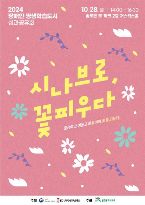 ¡®½Ã³ªºê·Î ²É ÇÇ¿ì´Ù¡¯ ÁÖÁ¦·Î ¿¸®´Â À̹ø Çà»ç´Â ºÏ±¸ Àå¾ÖÀÎ Æò»ýÇнÀ ÇÁ·Î±×·¥ Âü¿©ÀÚ, À¯°ü±â°ü °ü°èÀÚ µî 100¿© ¸íÀÌ Âü¼®ÇÑ °¡¿îµ¥ ¡®°³È¸ ÆÛÆ÷¸Õ½º¡¯, ¡®ÃàÇϰø¿¬¡¯À» ºñ·ÔÇØ ¡®»ç¾÷¼º°ú ¹ßÇ¥¡¯ µîÀÌ ¿ÀÈÄ 2½ÃºÎÅÍ 4½Ã 30ºÐ±îÁö ÁøÇàµÈ´Ù.