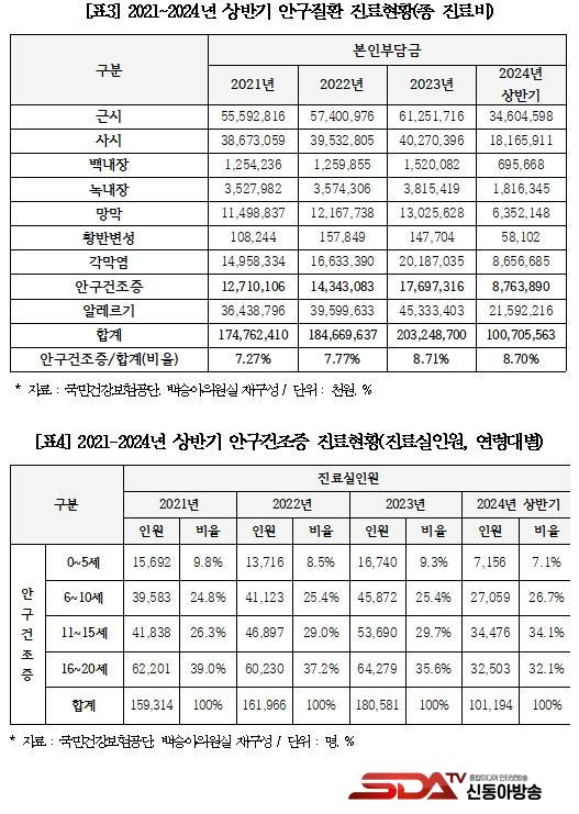 ¡à ƯÈ÷ ½º¸¶Æ®Æù °ú´Ù»ç¿ë ´ëÇ¥ ÁúȯÀÎ ¾È±¸°ÇÁ¶Áõ ȯÀÚ´Â ÃÖ±Ù 3³â°£ ²ÙÁØÈ÷ Áõ°¡Çß´Ù. Àüü ¿µÀ¯¾Æ¡¤¾Æµ¿¡¤Ã»¼Ò³â ¾È±¸Áúȯ ȯÀÚ Áß ¾È±¸°ÇÁ¶Áõ ȯÀÚ´Â 2021³â 15¸¸ 9,314¸í(8.3%), 2022³â 16¸¸ 1,966¸í(8.5%), 2023³â 18¸¸ 581¸í(9.15%)·Î ¸Å³â Áõ°¡Çß°í, ¾È±¸°ÇÁ¶Áõ Áø·áȯÀÚ º»Àκδã±Ýµµ 2021³â 36¾ï¿ø ´ëºñ 2023³â 51¾ï¿øÀ¸·Î 40.1% Áõ°¡Çß´Ù. ¿ÃÇØ »ó¹Ý±â±îÁö´Â 25¾ï¿øÀ̾ú´Ù.